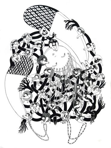 Her artwork includes fine line ink drawings, paintings and digitally layered compositions using scans of the originals. “Women and trees” has been a major theme in her works which has also been the subject of her art school graduation in Nuremberg in 2006.