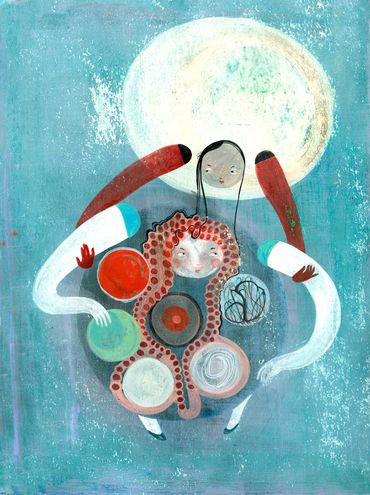 Regina is available for commissioned artwork if it fits her portfolio. She especially loves to illustrate abstract themes and moods in the fields of psychology, spirituality, motherhood, female empowerment, personal growth and healing, embodiment, energetics, eros, intimacy, contact with nature, poetry etc. Contact us to present your project ideas and requirements.